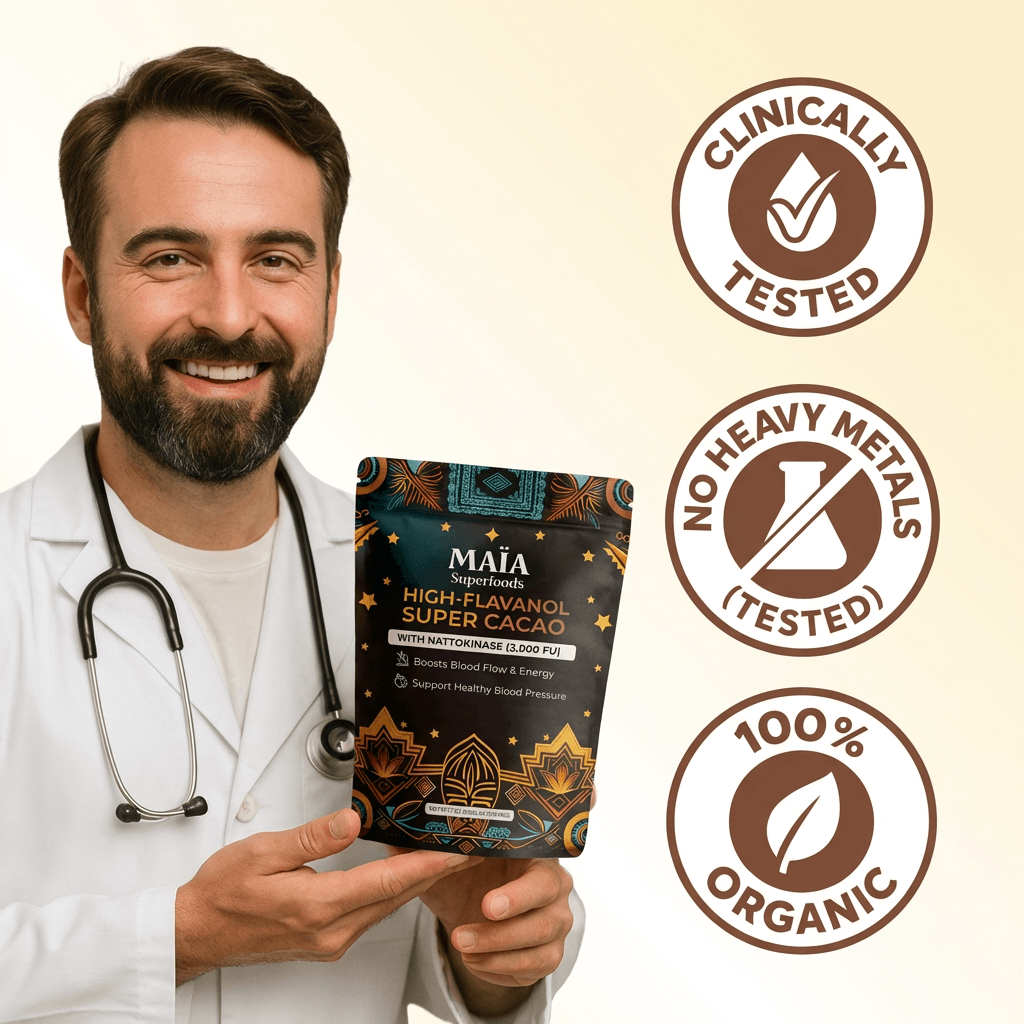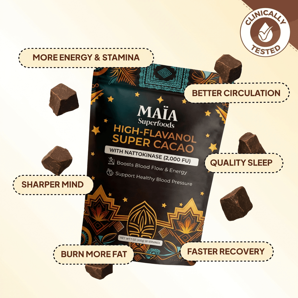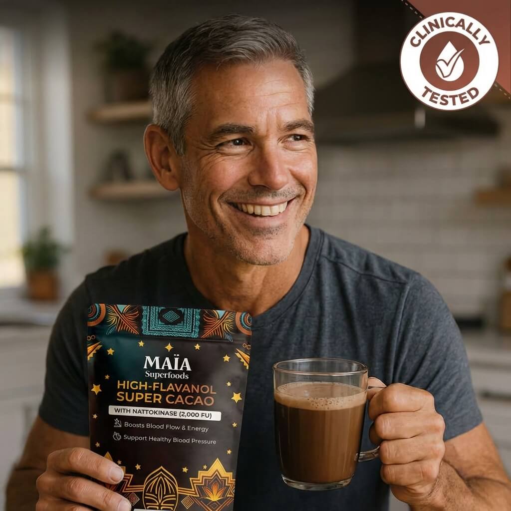 ✅ The cocoa flavanols in Maïa Ceremonial Cacao deliver cardiovascular support within 2 hours.